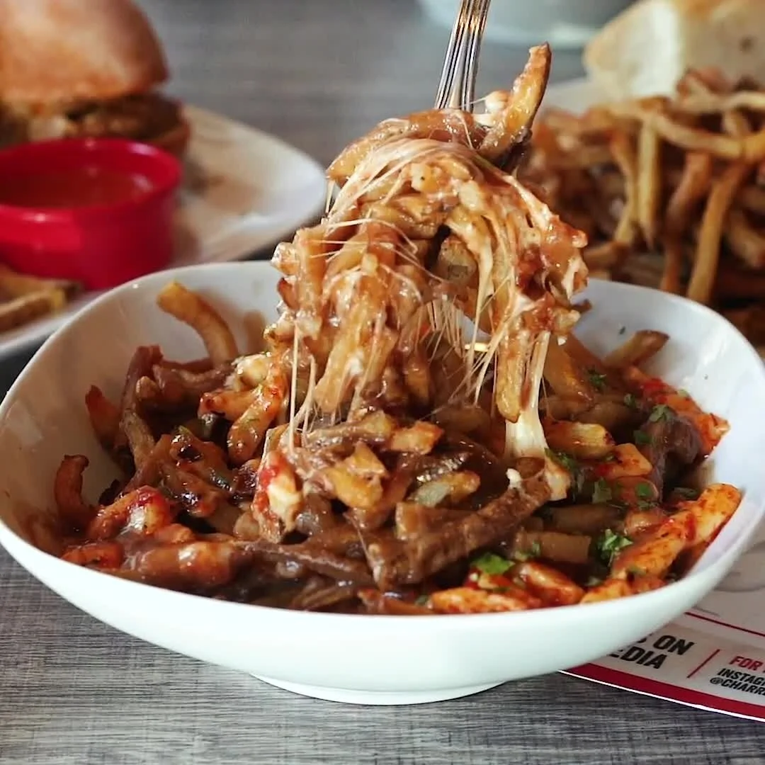 Fresh cut fries, homemade piri piri cheese curds, and gravy. [Add Bacon, Charred Chicken or Brisket]